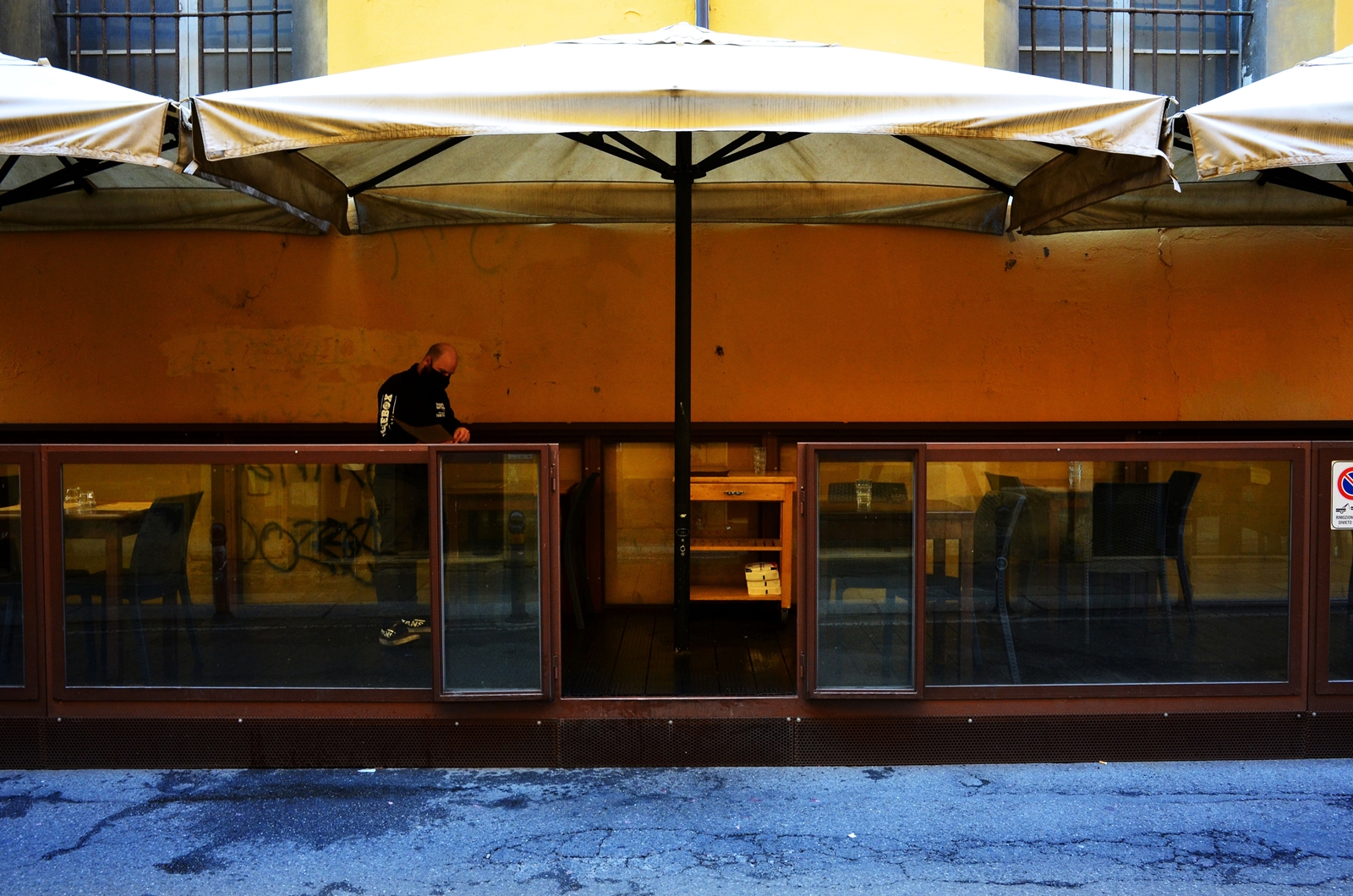 Le foto a colori sono state scattate a ottobre 2020, poco prima del DCPM del 3 novembre 2020. Quelle in bianco e nero un paio di settimane dopo, quando i ristoranti hanno dovuto nuovamente chiudere i battenti.